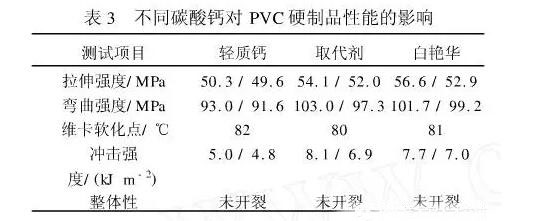 另外(wài),為(wèi)了(le)研究碳酸鈣用(yòng)量對(duì•✔)層壓闆機(jī)械性能(néng)的(de)影(yǐng)響,将碳酸鈣的(de)量由3份增至6,并且與钛酸酯偶聯的(de)碳酸鈣(取代劑)和(hé)硬脂酸活化(huà)的(de)超細鈣(白(bái)豔華)作(zuò)對(duì)比試驗。配方中除碳酸鈣的(de)量由3份增加到(dào)6份外(wài),其他(tā)成分(fēn)不(bù)變。→φδ同等含量經不(bù)同處理(lǐ)的(de)∑ CaCO3對(duì)PVC制(zhì)品機(jī)械性能(néng)的(de)影(‍♥"yǐng)響見(jiàn)表3