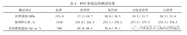 2.2 PVC軟制(zhì)品試驗情況除了(le)PVC硬制(zhì)品外(wài),PVC軟制(zhì)品壓延薄膜中進行(xíng)多(duō)次小(xiǎo)型試驗↑ ​,現(xiàn)以下(xià)面的(de)試↕©✔Ω驗為(wèi)例。所用(yòng)設備為(wèi)捏合機(jī)(10L)XK-160A型兩輥塑煉機(jī)。配方如(rú)下(xià):PVC100,三鹽基硫酸鉛4,硬脂酸鋇2,硬脂酸015,增塑劑40,輕質鈣、取代劑、活化(huà)重質鈣及白(bái)♣₽→♠豔華分(fēn)别為(wèi)10份。所配料經捏合8min之後,置兩輥機(jī)塑煉,兩輥機(jī)溫度為(wèi)170e,塑煉15min之後取樣測試,結果見(jiàn)表4